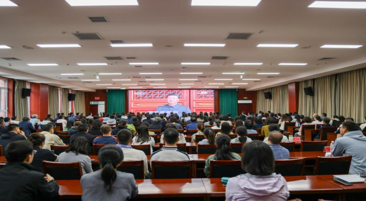 9月3日上午9时,机关党委在博达校区行政楼3楼会议室和红湖校区行政楼5楼会议室组织集中收看纪念中国人民抗日战争暨世界反法西斯战争胜利80周年大会实况直播,机关教辅单位教职工240余人参加活动。