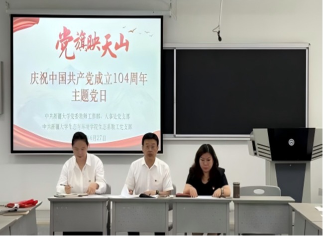 党委教师工作部党支部联合生态与环境学院生态系教工党支部开展“党旗映天山”主题党日活动,重温入党誓词,同唱红色歌曲,共过政治生日,活动取得预期效果。